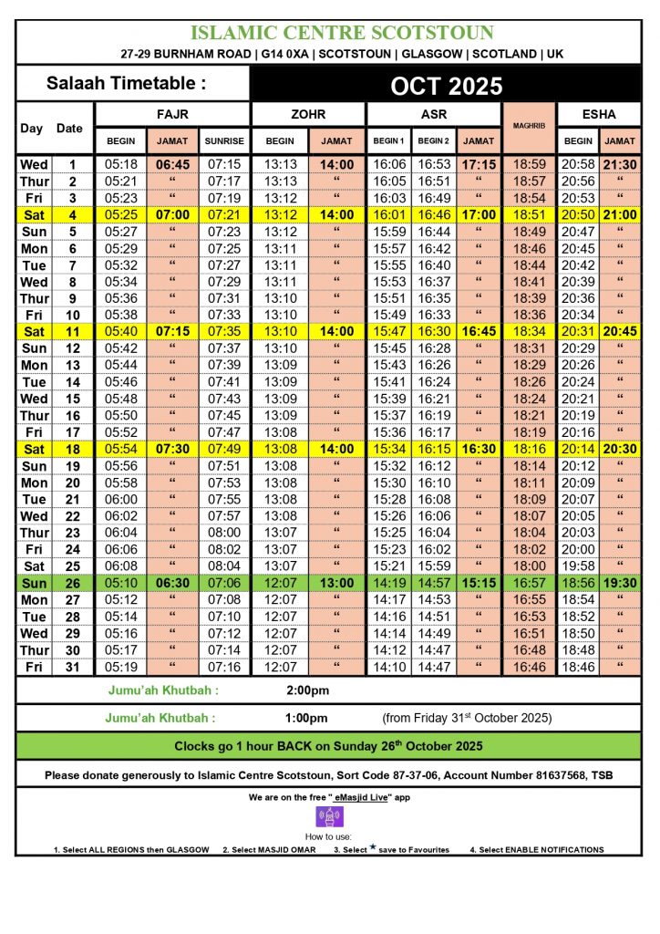 We look forward to seeing you at the Islamic Centre Scotstoun (Masjid Umar)!