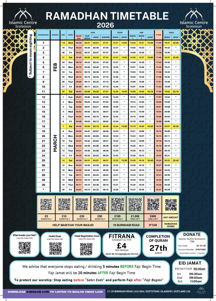 We look forward to seeing you at the Islamic Centre Scotstoun (Masjid Umar)!